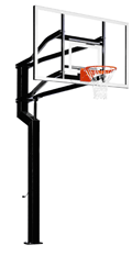 Matching the MVP in appearance and strength the CAPTAIN gives you a mid-sized backboard option on a 6" square pole system and is an ideal choice for a serious player. Combine the ultimate ball response of a standard 38" x 60" Competition Tempered GLASS backboard with the 6" square off-set pole and 4' regulation play area and the CAPTAIN brings the indoor basketball experience to your backyard basketball court!